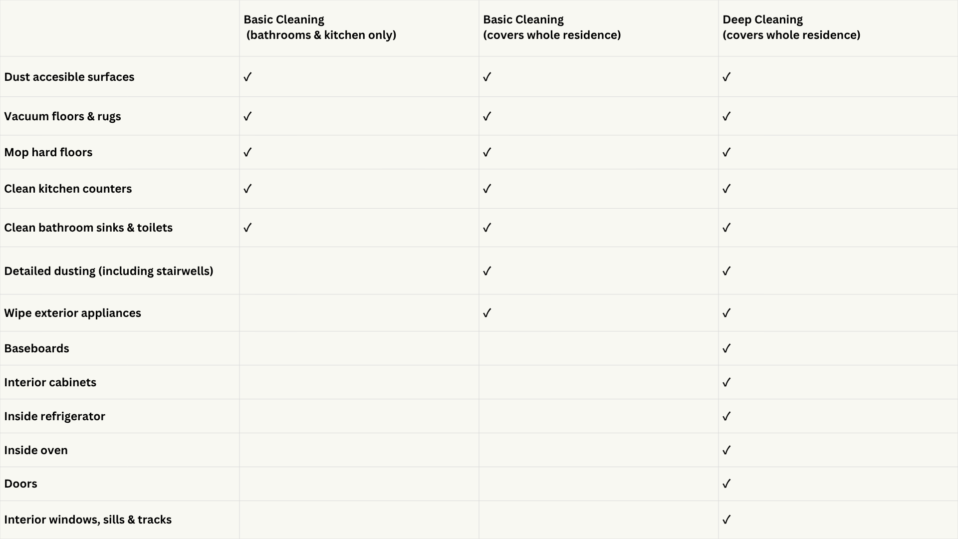 Customize your cleaning service with optional add-ons. These can be added to any basic, standard or deep cleaning appointment